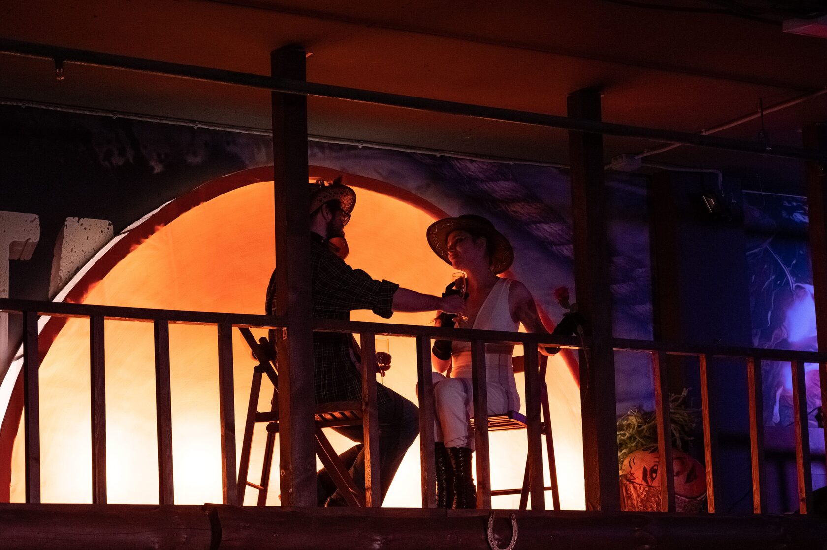 Благодаря специальной театральной рассадке, окружённой масштабными декорациями двухэтажного ковбойского города, зритель ощутит себя героем ковбойской истории.